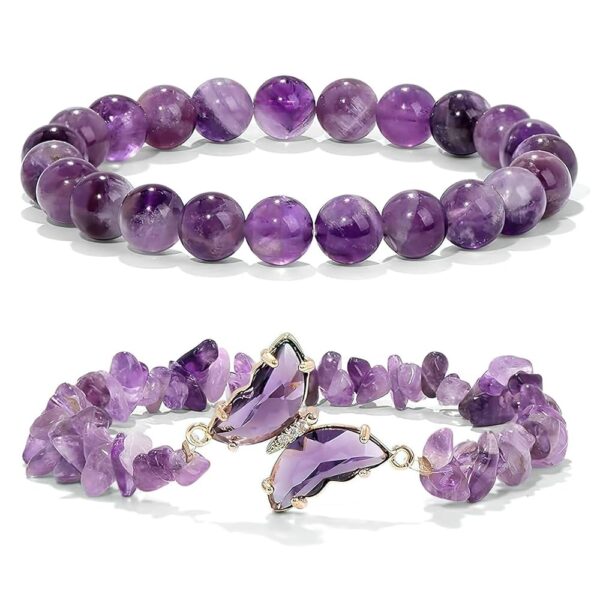 - Estilo Clásico y Creativo: Puedes llevar la pulsera de amatista sola para un look sencillo o combinarla con la pulsera de mariposa para un estilo más audaz.