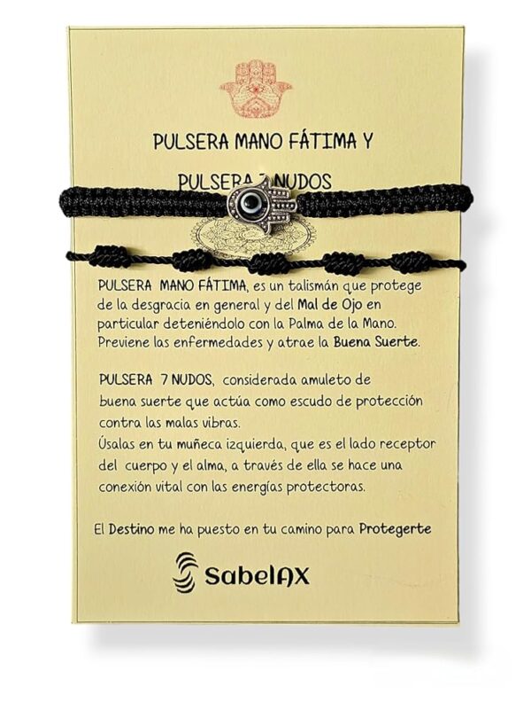 Si estás buscando un amuleto que no solo sea estéticamente atractivo, sino que también ofrezca protección y buena suerte, la Pulsera 7 Nudos Roja y la Pulsera Mano de Fatima con Ojo Turco de SabelAX son opciones ideales. Estas pulseras están diseñadas para alejar el Mal de Ojo y las malas energías, brindando felicidad, salud, suerte y paz.