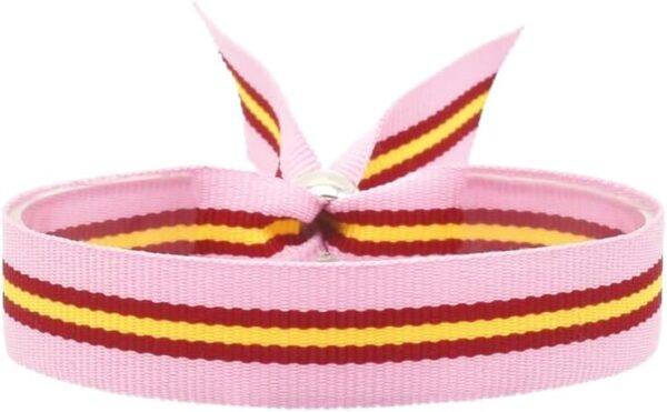 Esta pulsera destaca por su diseño en tela rosa, que aporta frescura y originalidad. La inclusión de la bandera de España la convierte en una opción perfecta para aquellos que desean mostrar su patriotismo de manera sutil y elegante.